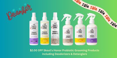 Get $2.00 OFF Skout's Honor Probiotic Grooming Products including Deodorizers and Detangleres. (Applied for Dog of the Woods, Lavender, Honeysuckle)
