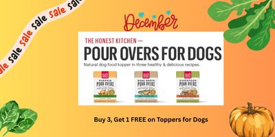 Buy 3, Get 1 FREE on all toppers for Dogs. Offer includes Pour Overs line.